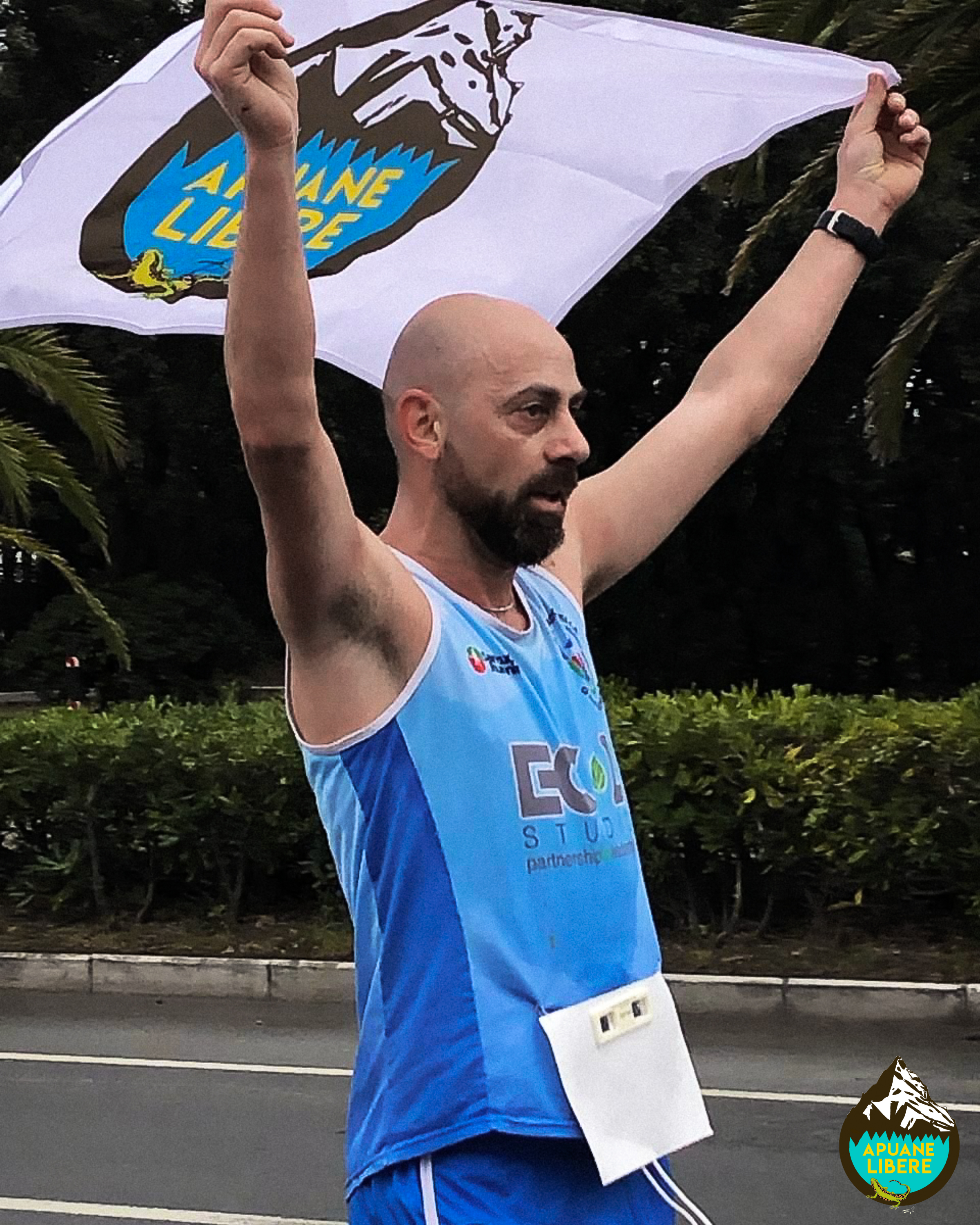Dopo confronto abbiamo accettato ben volentieri l’offerta del simpatizzante (probabilmente futuro socio ad honorem!) a cui è stata data una bandiera. Il corridore (pardon il runner) ha conquistato un ottimo 30’ posto tra gli assoluti ed è passato sul quel traguardo delle ipocrisie con la bandiera di Apuane Libere. Lì c’erano alcuni nostri volontari a dargli tutto il calore di cui aveva bisogno. Come sempre ripetiamo che il nostro nome è un auspicio e speriamo prima o poi di veder liberati queste montagne dall’ipocrisia prima e poi dalla macelleria che le sta facendo scomparire.