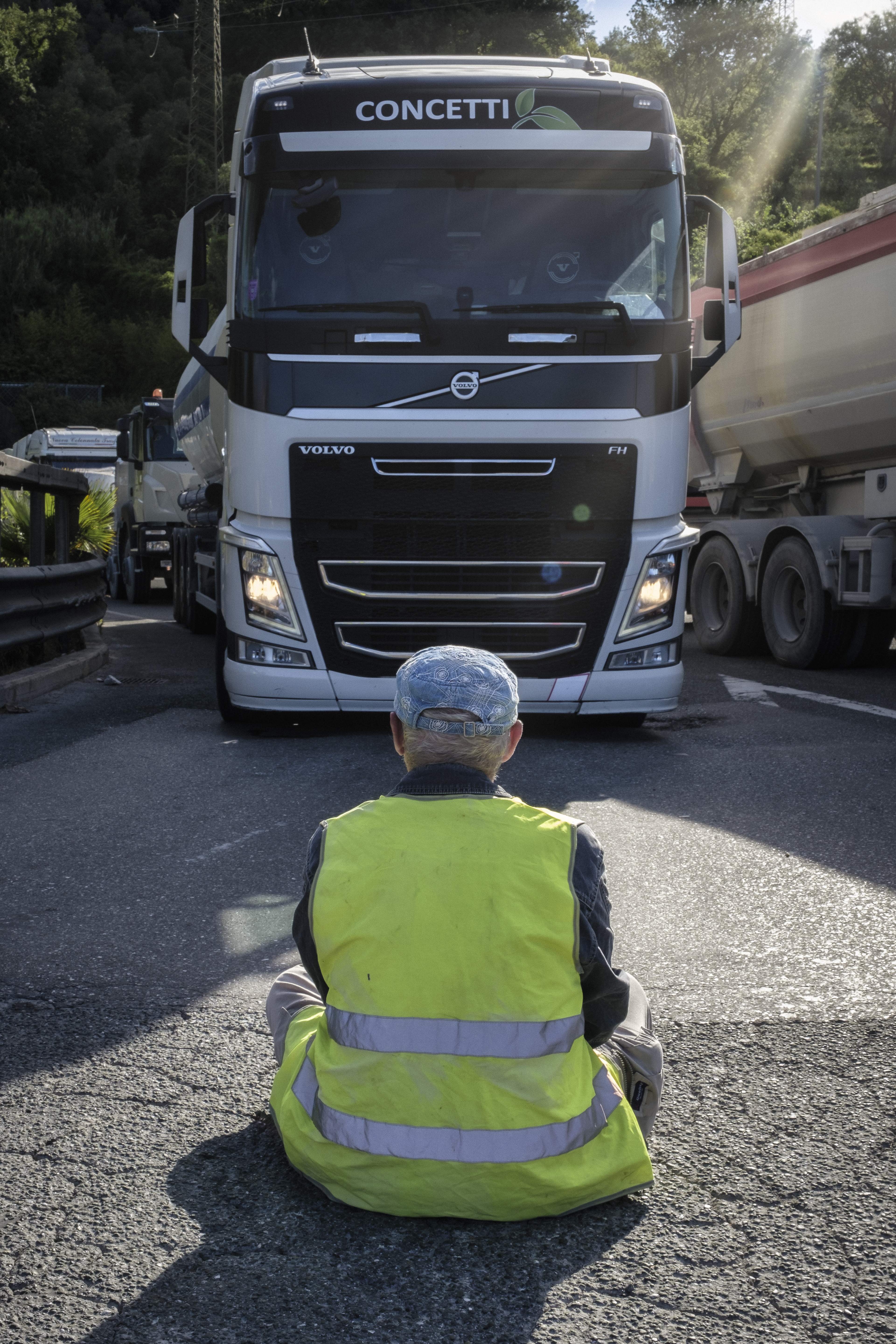 Alcuni volontari di Apuane Libere, hanno effettuato un sit-in lungo le strade della prima tappa della competizione ciclistica più famosa al mondo, per manifestare contro la distruzione delle Alpi Apuane.