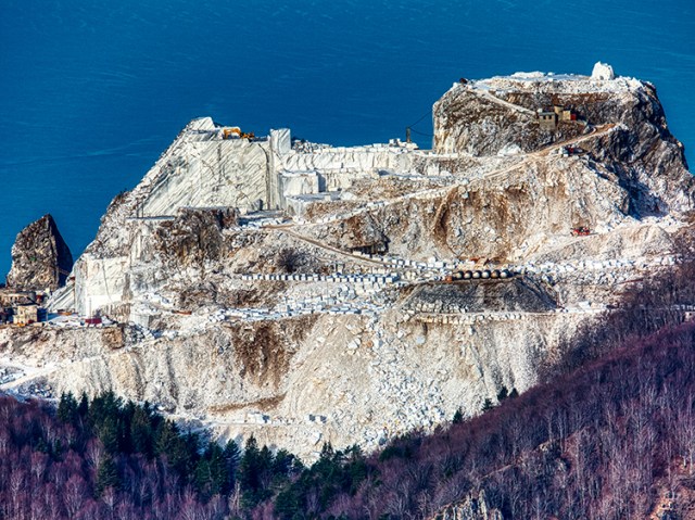 In Italia esiste una legge nazionale – il Codice dei beni culturali e del paesaggio – che sottoporrebbe a vincolo: “le montagne per la parte eccedente 1.600 metri sul livello del mare per la catena alpina e 1.200 metri sul livello del mare per la catena appenninica e per le isole, i ghiacciai e i circhi glaciali, i parchi e le riserve nazionali o regionali, nonché’ i territori di protezione esterna dei parchi”. Grazie ad improbabili deroghe regionali, sulle Alpi Apuane sono presenti attività industriali sopra i 1200 metri di quota, sono scomparse intere cime, creste, selle e valli di origine glaciale la cui formazione aveva necessitato milioni e milioni di anni, ma quello che crea lo sconcerto più inconcepibile, è il fatto che all’interno del Parco Naturale Regionale delle Alpi Apuane, vi sono ben 39 bacini estrattivi con circa 70 cave attive al loro interno. Una vera e propria fiera dell’assurdità…